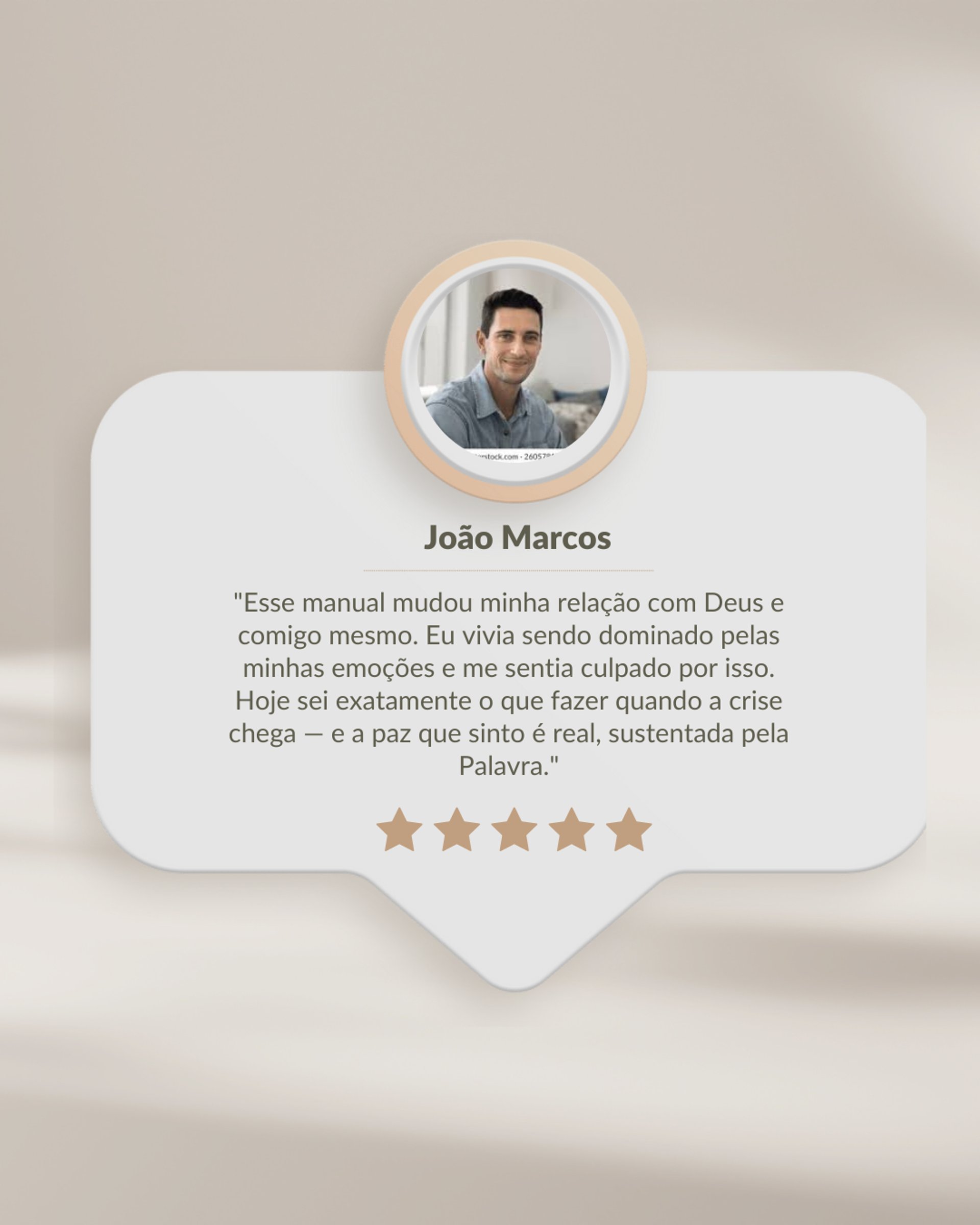 Saber exatamente qual versículo buscar, qual oração fazer e qual passo dar quando a emoção sair do controle — sem ficar perdido na hora da crise.